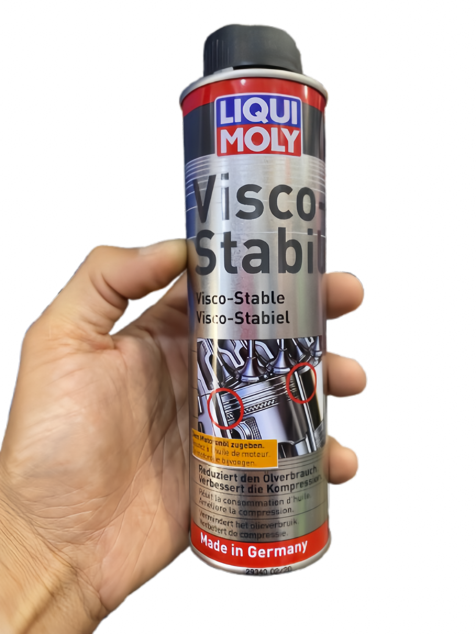 أفرغ محتوى العبوة كاملة في فتحة الزيت مع مراعاة الكمية الكلية لزيت المحرك.